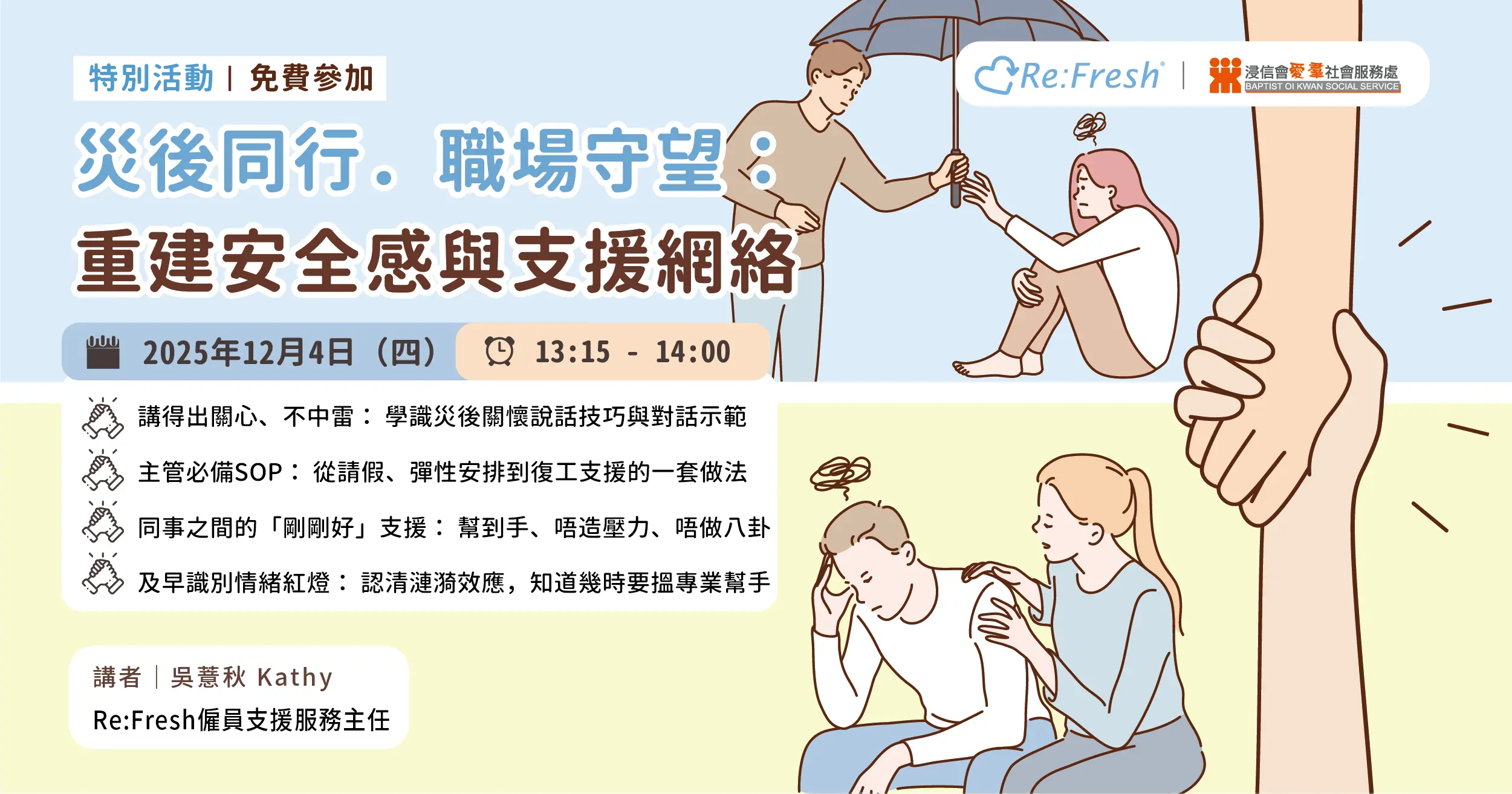 【特別活動|免費參加】災後同行.職場守望:重建安全感與支援網絡