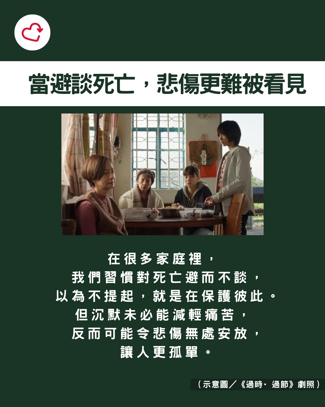 在華人社會,「死亡」始終是一道難以跨越的忌諱。從小到大,長輩常以「別再提」、「都過去了,沒事」來安撫後輩。成年後,我們也習慣以迴避或淡化的方式面對死亡,深怕談論會招致不吉利,或觸景傷情。
