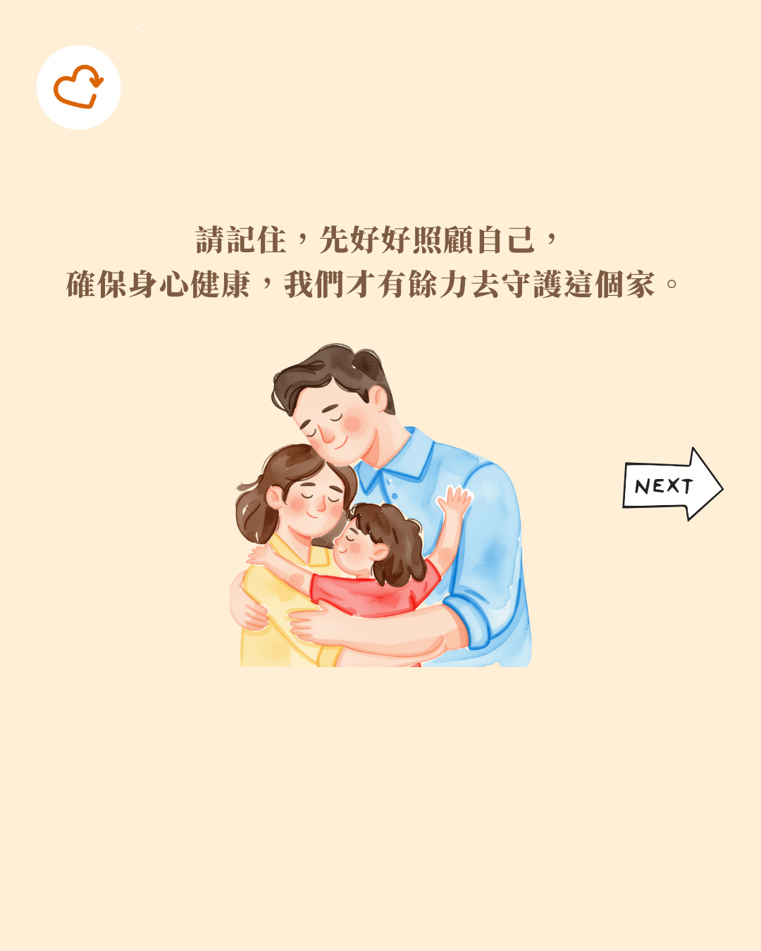 請記住,先好好照顧自己,確保身心健康,我們才有餘力去守護這個家。