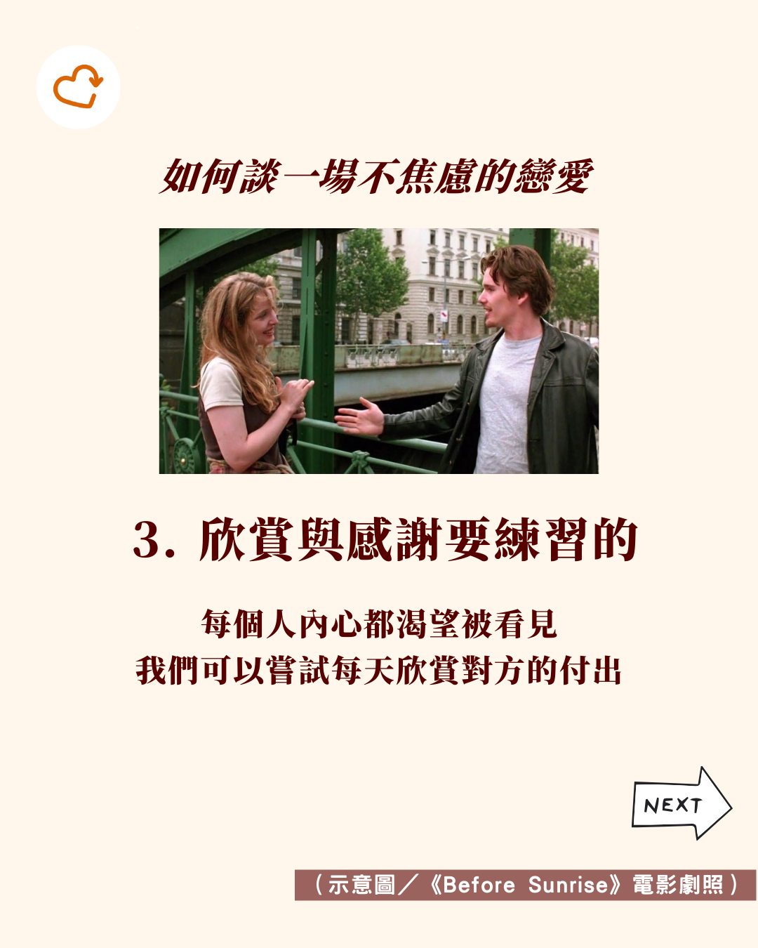 在這個充滿「速食愛情」與「情緒價值」焦慮的時代,我們該如何談一場不焦慮的戀愛?邀請你可以嘗試以下三個方法: