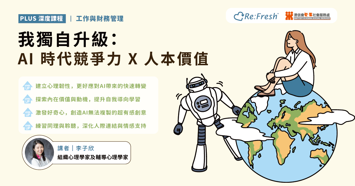 本活動將聚焦在職人士常見的挑戰與困局,並以心理學及組織行為學為基礎,聚焦職場人士常見的挑戰與困境,助你深化自我覺察,提升專業技能,全面升級職場競爭力,涵蓋四大主題: