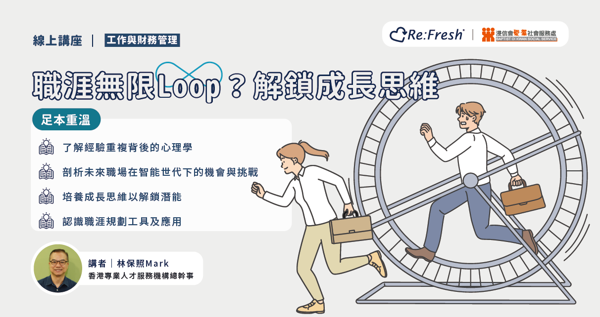 本活動將聚焦在職人士常見的挑戰與困局,並以心理學及組織行為學為基礎,聚焦職場人士常見的挑戰與困境,助你深化自我覺察,提升專業技能,全面升級職場競爭力,涵蓋四大主題: